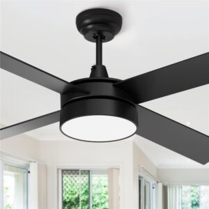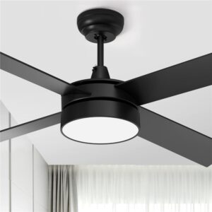 t tt tttStay cool and stylish with the Dextrus 42in Black Ceiling Fan with Light and Remote. Featuring four blades and a black finish, this ceiling fan adds a sleek and modern touch to any room. The memory function allows you to easily set and customize your ideal fan speed, while the night light mode…