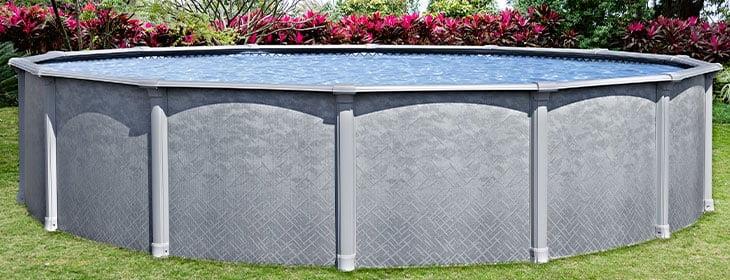 The Lake Effect Lifestyle Gray Above Ground Swimming Pool has a gorgeous wall pattern that will turn your backyard into a perfect oasis. With resin protected steel walls this pool is sure to last for years to come. Featuring 7″ resin top ledges and 6″” wide steel uprights this will add another level of protection. The resin top ledge also makes this a perfect pool for saltwater systems. In addition to the swimming pool, a skimmer and 20g liner are also included. Made in the USA.
