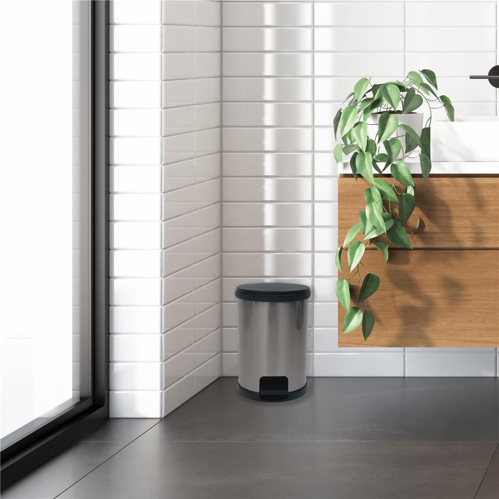 - Mainstays 1.5 Gallon Bathroom Plastic Peddle Step Trashcan, Silver