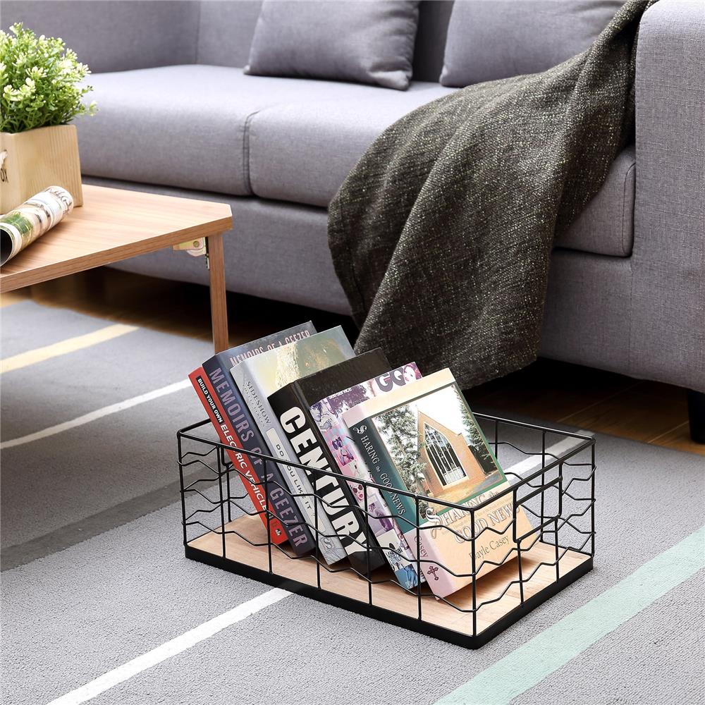 Mainstays Decorative Black Wire Basket with Wood Board Base, 15.75” L x 9.45” W x 5.91” H