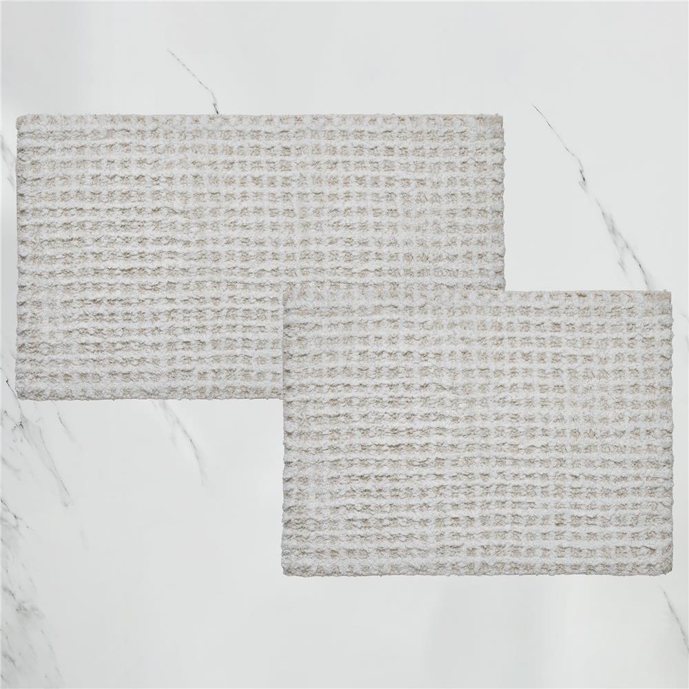 Mainstays Tufted Windowpane Beige Cotton Bath Rug Set, 2-Piece