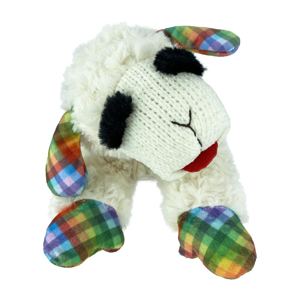 Multipet Lamb Chop Plush Dog Toy, Medium, Plaid Paws, 10.5 inches