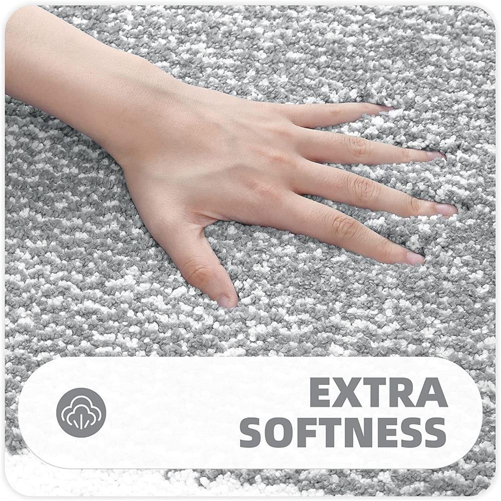 PABUBE Bathroom Rug, Soft Absorbent Bathroom Mat and Bath Mat, Premium Microfiber Shag Bath Rug Machine Washable (15.7″x24″,Grey and White)