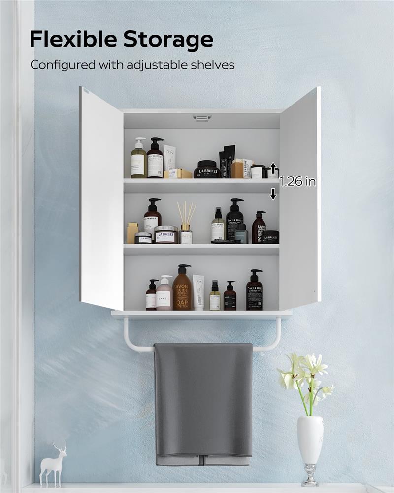 Vertical Space Maximization: This bathroom wall cabinet is cleverly designed to be mounted above the toilet, utilizing that often overlooked vertical space to the fullest. It keeps your bathroom organized without hogging up valuable floor real estate.