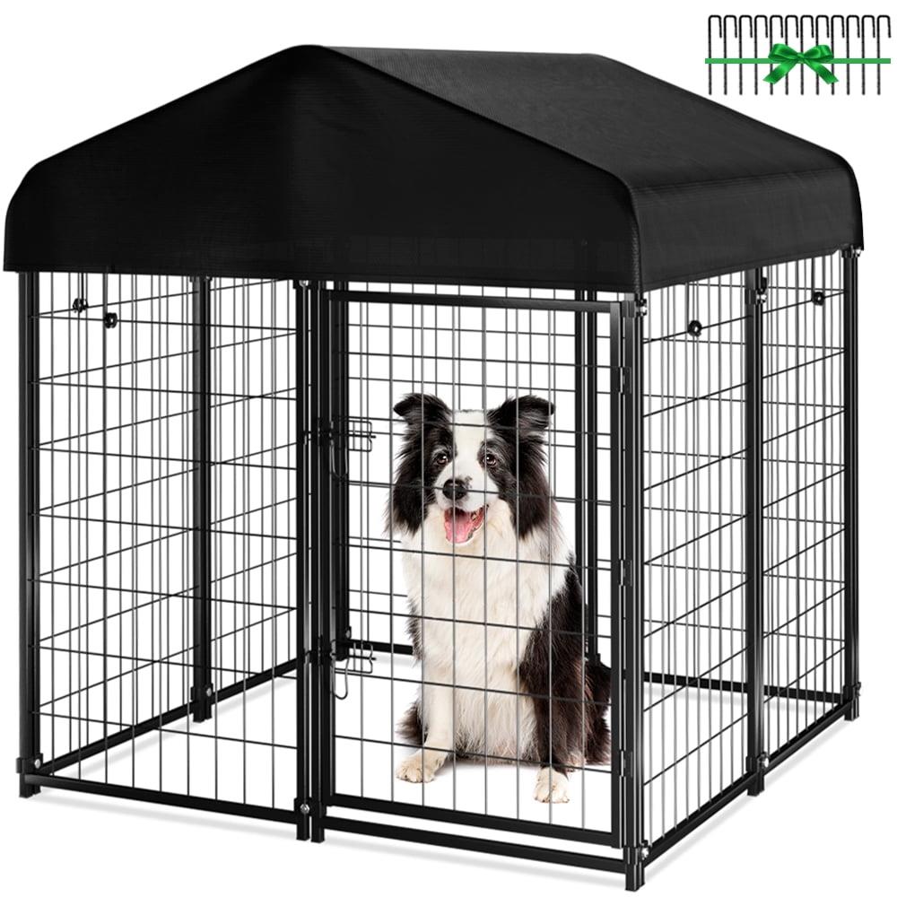 - Unique Design: The PawGiant dog kennel is made of high-strength metal, fully welded for maximum strength. It includes reinforced ground spikes for stability and non-slip rubber feet to protect floors. Suitable for small and medium dogs up to 33 lbs.Free 12pcs metal ground stakes are easily inserted into the ground for more stability.